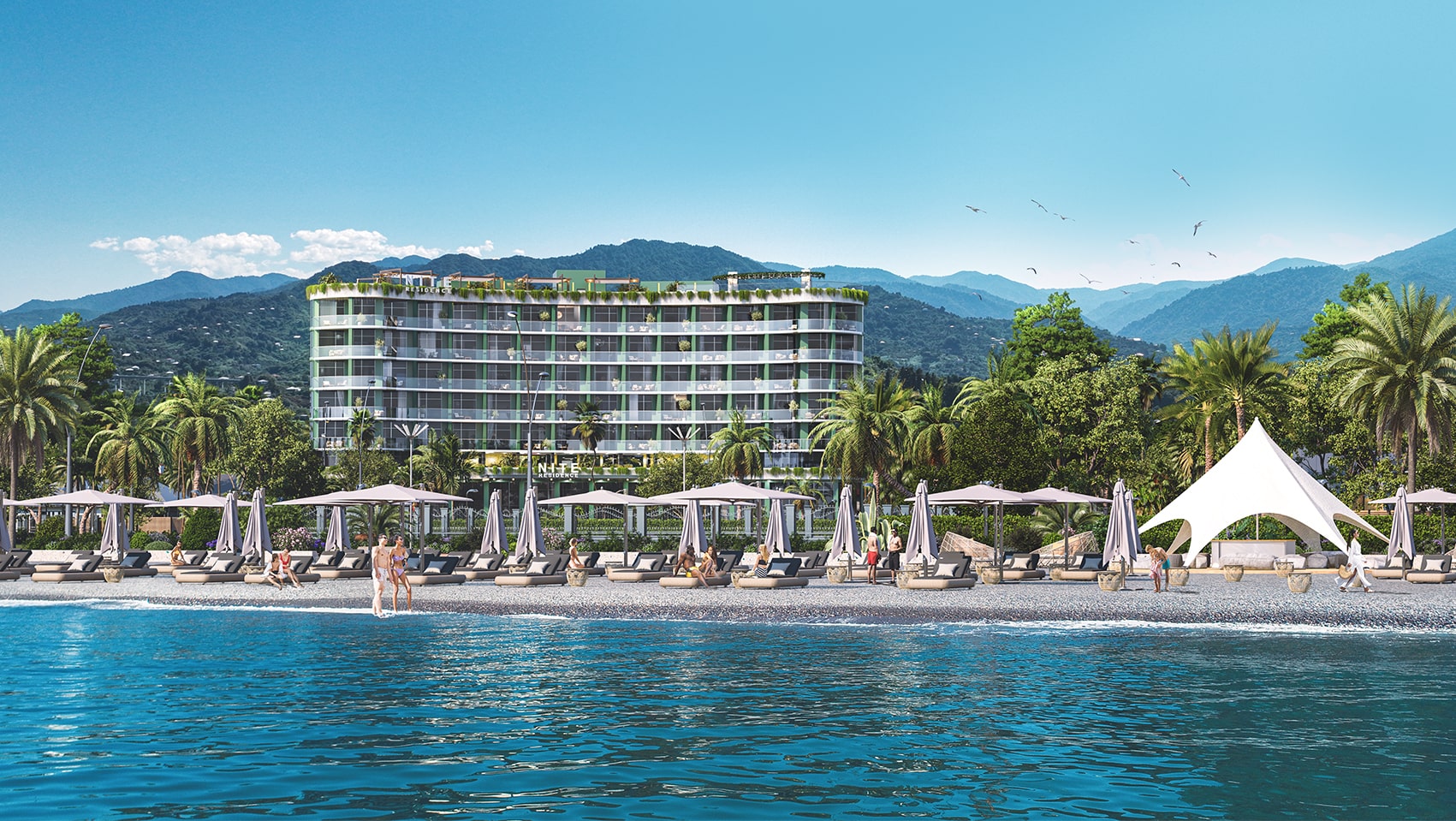 The project is located in one of the region’s most outstanding areas — just a 2-minute walk to the beach, with direct private access.