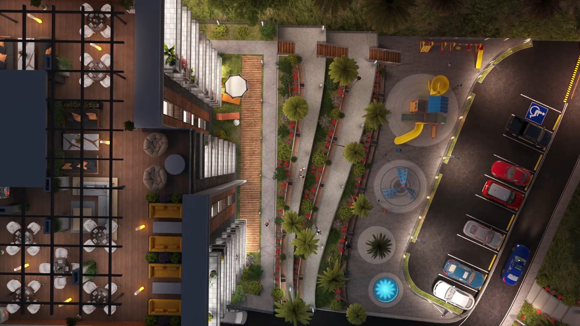The complex includes all the spaces essential for modern living: